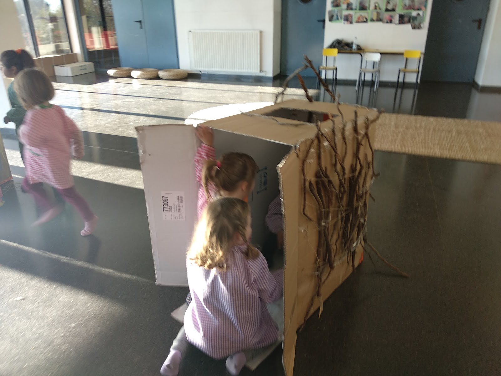Amb les casetes fetes pels nens i nenes de P3, ens han muntat un matí ben teatral!